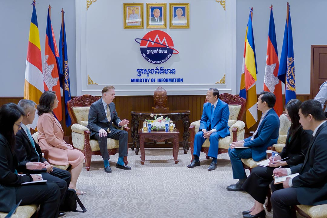 A delegation from B2B Cambodia, led by CEO, Sarvinoz Nuritdinova, and Director, Anthony Galliano, paid a courtesy visit to H.E. Neth Pheaktra, Minister of Information, on March 14, 2025, at his minist...