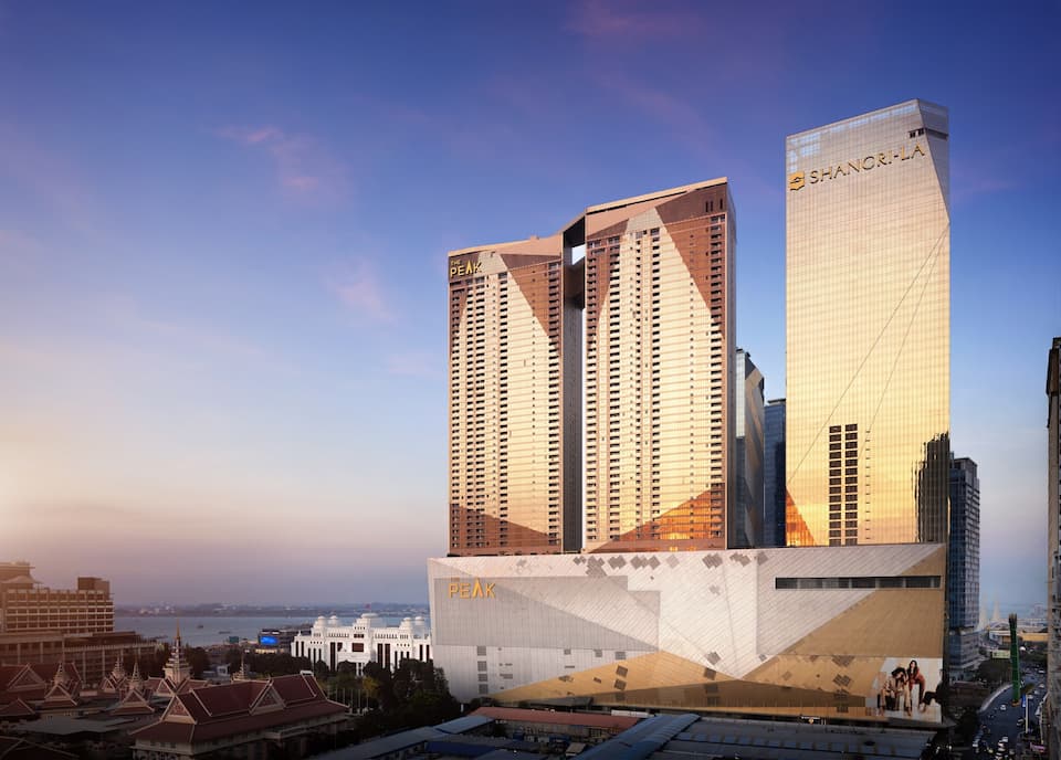Shangri-La Phnom Penh is part of one of the tallest tri-tower architectural structures in the Cambodian capital and reaches 228 metres high. The hotel has a Khmer-inspired design and in total offers 303 rooms with panoramic river views of the confluence of the Mekong, Tonle Sap, and Tonle Bassac rivers, dining experiences featuring local and international cuisine, and facilities including a large ballroom, infinity pool, and spa.