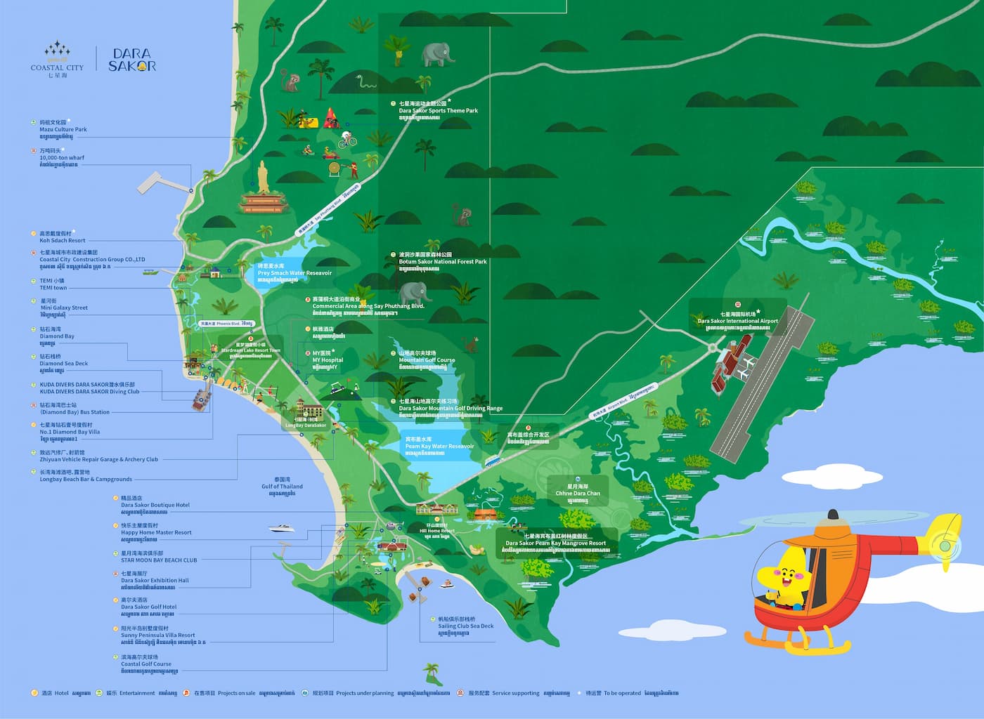 The Koh Rong International Eco-Tourism Airport was announced in 2023 with a US $300 million development led by Royal Group Koh Rong Development Company, under a similar agreement to the Dara Sakor International Airport construction project.