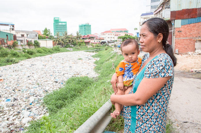 A woman and her child next to a canal clogged with rubbish in the suburbs of Phnom Penh. KHMER TIMES / FABIEN MOURET The government is looking at ways to tackle Cambodia’s waste problem wit...