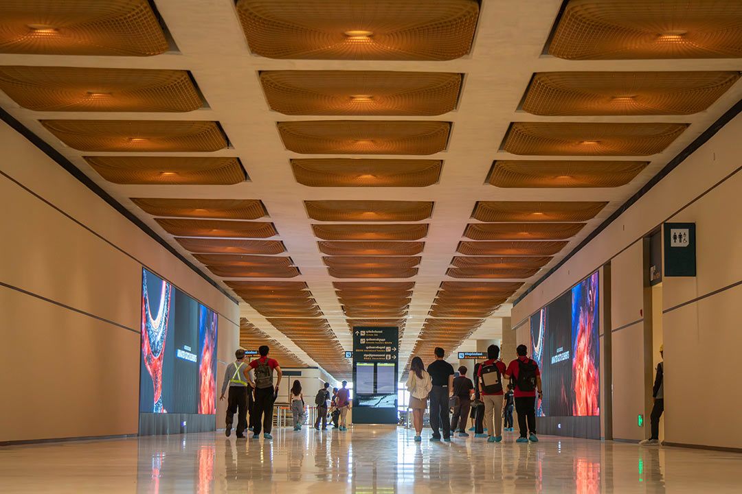 Visitors landing in Techo International Airport will be greeted with large LED screens in the main arrivals hallway./B2B Cambodia.