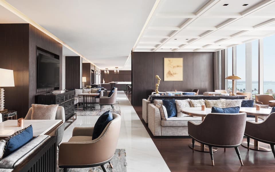 With access to a gym, tennis and squash courts, and a luxurious outdoor swimming pool there are many ways to keep active for guests. There are also as many as nine international restaurants and bars including a riverside bar, a cigar lounge, and a Champagne Boutique. There is no shortage of meeting and unwinding spaces for business guests.